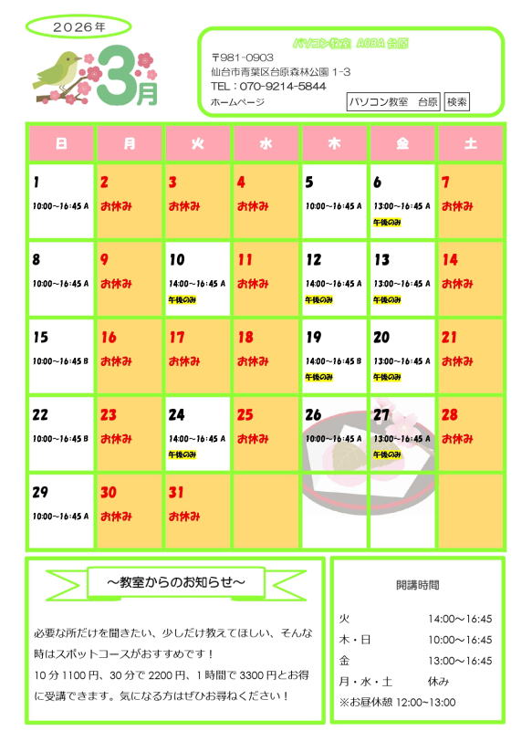 パソコン教室AOBA台原