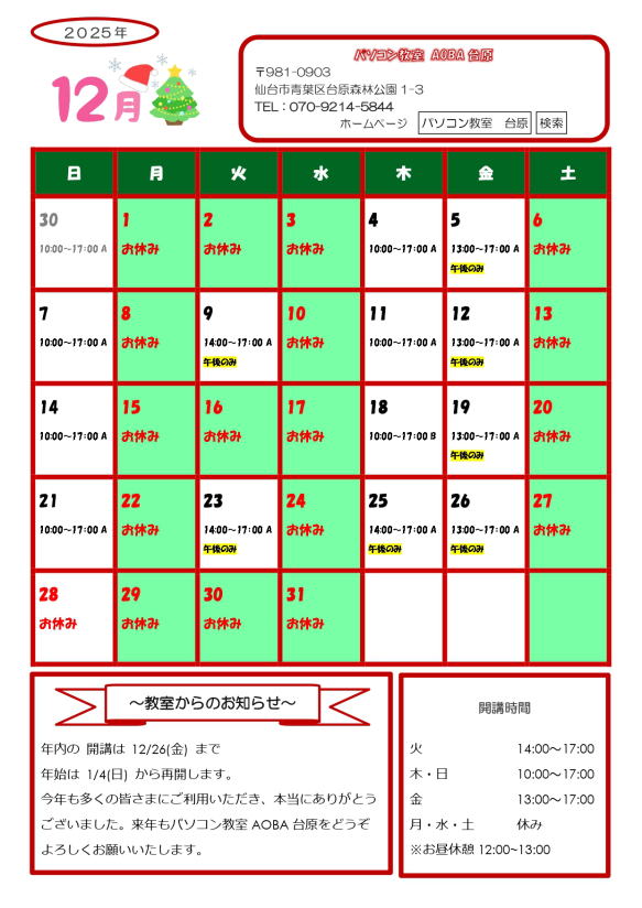>>パソコン教室AOBA台原について詳しくはこちら →パソコン教室AOBA台原の特徴